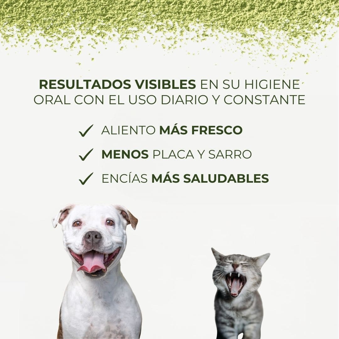 La mayoría de dueños nota mejora en el aliento y dientes más limpios en 2-4 semanas de uso continuo.